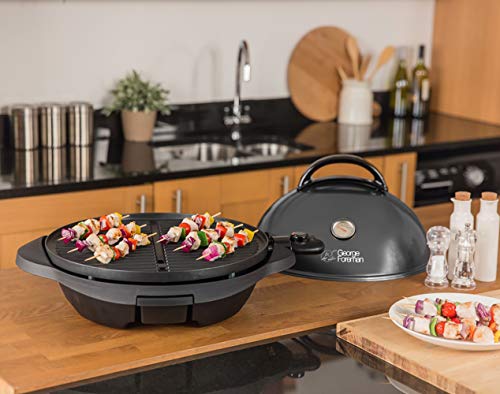 George Foreman 22460-56 Stand- & Tischgrill 2-in-1, Universal-Grill für Innen- und Außennutzung, Ø 44,5cm, außenliegendes Thermometer, 2400 Watt, schwarz